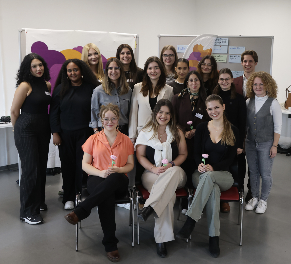 Neben der Vorstandswahl gab es ein interaktives Programm. Die erfahrene Kommunalpolitikerin Dorothea Maisch aus Gaggenau, leitete die Teilnehmerinnen an, sich mit ihren Rollen auseinander zu setzen, um Engagement und Alltag erfolgreich zu verbinden. Zusätzlich teilte die Trägerin des Helene-Weber-Preises ihre Erfahrung mit Netzwerken und deren Aufbau. Melanie Schmitt, Geschäftsführerin des Dachverbands der Jugendgemeinderäte und fachliche Begleitung des Netzwerks, feilte mit den jungen Frauen an einem identifikationsstiftenden Leitbild. Zudem priorisierten alle gemeinsam aktuelle feministische Themen für künftige Bildungsangebote. Elif Aysu Karayagiz, Vorsitzende für Externes beim Dachverband der Jugendgemeinderäte Baden-Württemberg e.V. gab wichtige Impulse zur Öffentlichkeitsarbeit, insbesondere an das neue Presseteam weiter. Der Fotograf Thomas Rebel fotografierte die Nachwuchstalente am Podium. Eine gute Grundlage, um Selbstwahrnehmung und Außenwirkung vor Publikum zu überprüfen.