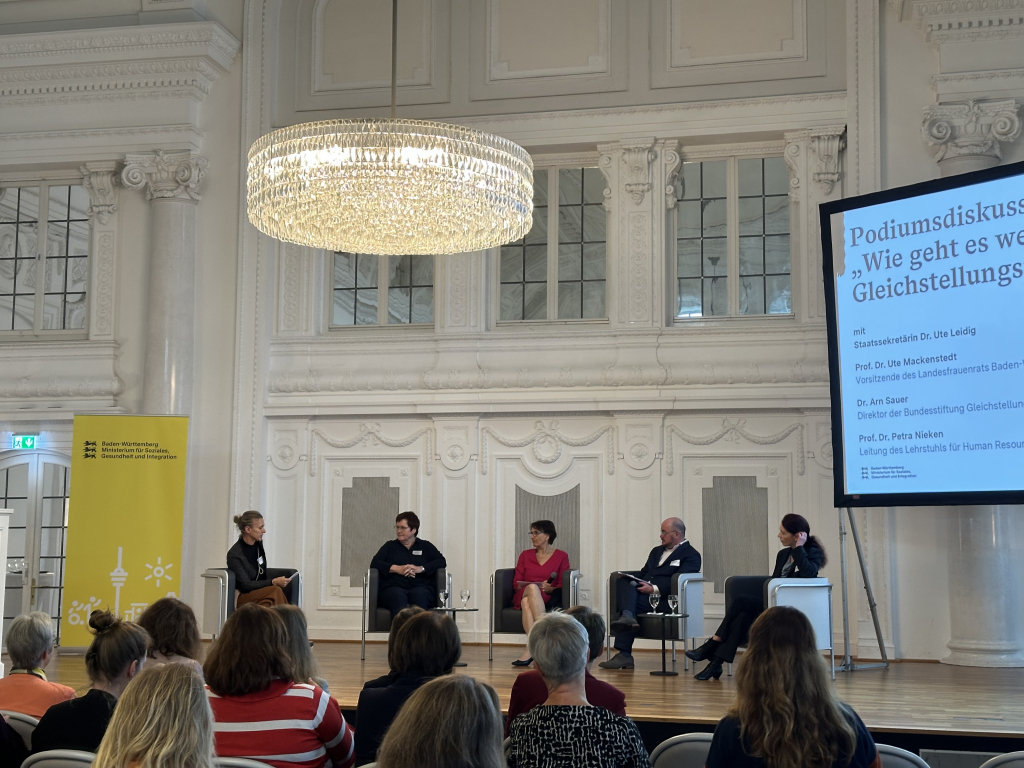 Die Vorsitzende des Landesfrauenrats Baden-Württemberg, Prof. Dr. Ute Mackenstedt, betonte während der Diskussion: „Wir sind noch längst nicht da, wo wir sein wollten“. Hierbei sei eine nachhaltige Verankerung der Gleichstellung durch die Politik unbedingt notwendig. Ebenfalls hob sie hervor: „Gleichstellung ist kein nice to have, das ist knallharte Ökonomie, es ist Demokratie und Gerechtigkeit und das ist der Grund, dass sich so viele dafür einsetzen.“